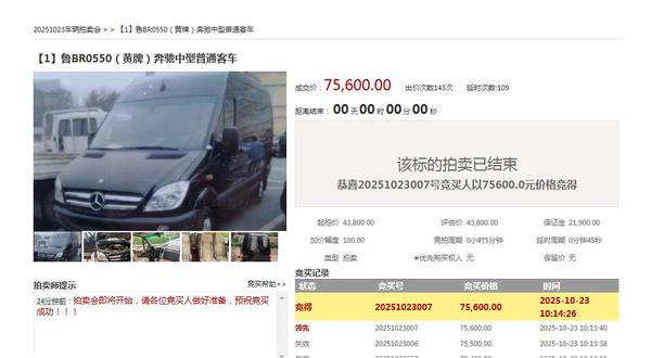在我公司網(wǎng)絡(luò)拍賣(mài)平臺(tái)www.gtqingxin.com近日舉辦的車(chē)輛專(zhuān)場(chǎng)拍賣(mài)會(huì)上,某國(guó)有單位所屬的奔馳中型普通客車(chē)歷經(jīng)143輪次競(jìng)價(jià),最終以72.6%的溢價(jià)率順利成交,實(shí)現(xiàn)了國(guó)有資產(chǎn)價(jià)值的最大化。